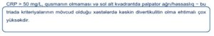 Laborator analizlər − QÜA – da leykositoz (xəstələrin yarısından çoxunda), leykoformulanın sola meyilliyi (>75%) müaşahidə edilir; CRP iltihabın başlamasından 7-8 saat sonra yüksəlməyə başayır, 48 saatda pik həddə çatır.